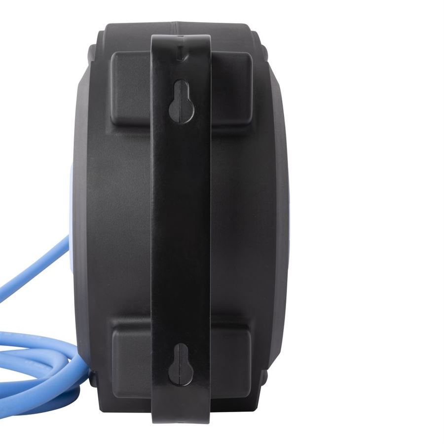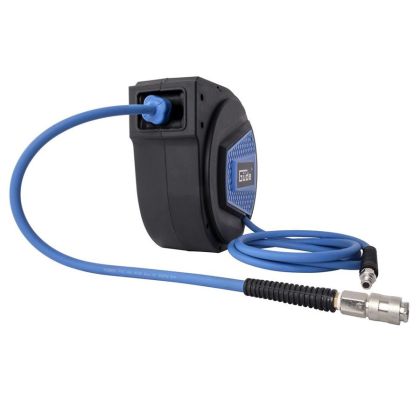 Samonavíjecí buben s 10m tlakovou hadicí, umožňující využití pneumatického nářadí a příslušenství i ve vzdálenějších částech dílny nebo garáže.