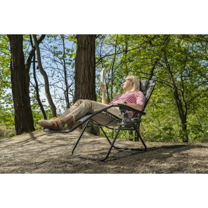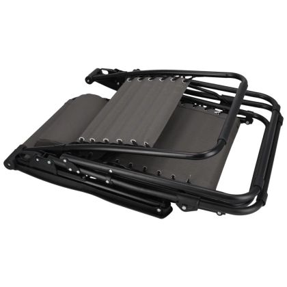 Rozměry: 157x65x107 cm, barva: grafitová, materiál: rám z ocelových trubek ø22, sedák z textilní tkaniny2*1. Prodyšný materiál, odolný vůči povětrnostním vlivům, snadno se čistí. Stabilní konstrukce, možnost nastavení lehátka Zero-gravity, které zajišťuje rovnoměrné rozložení tělesné hmotnosti a poskytuje pocit pohodlí a relaxace. Obsahuje poličku na nápoj. Maximální zatížení: Max. nosnost: 120 kg
