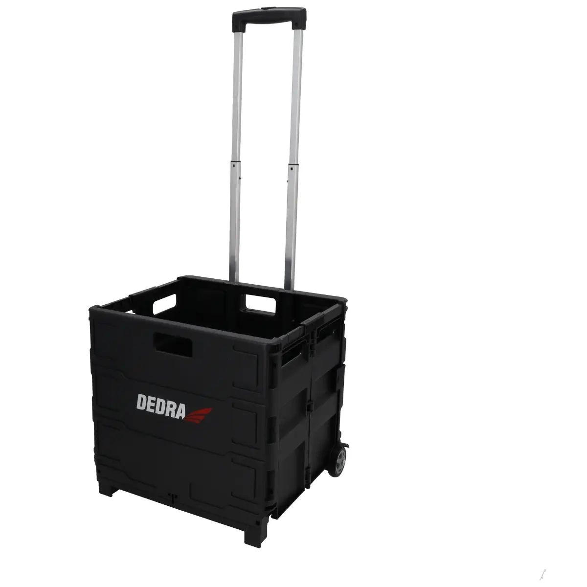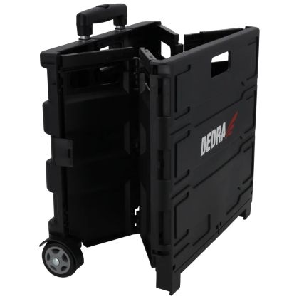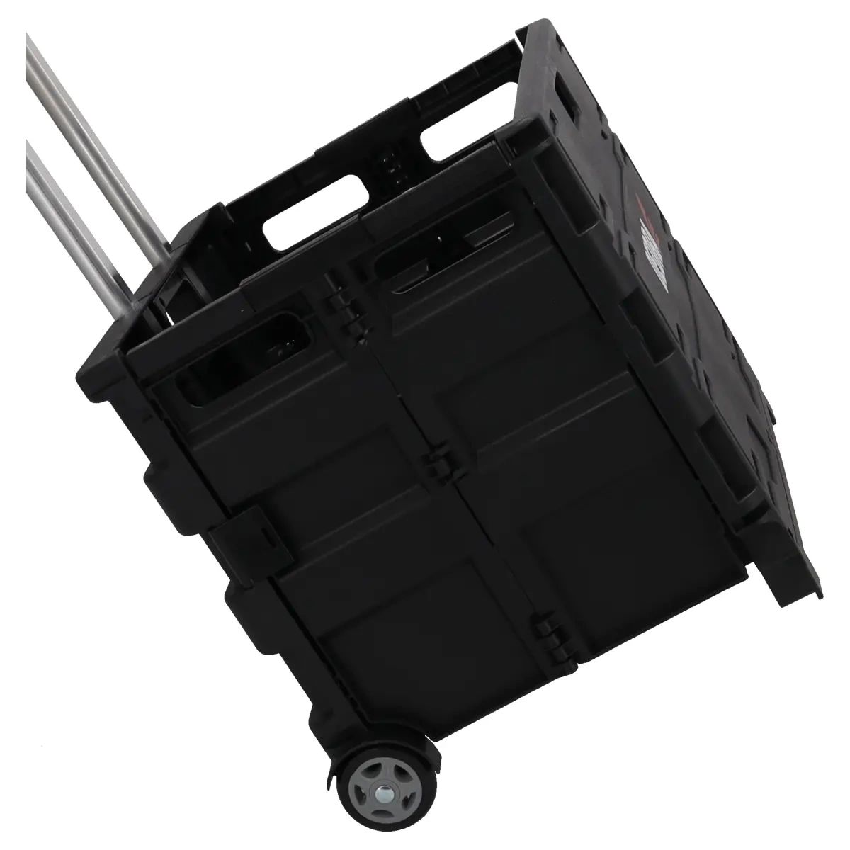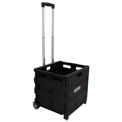 Max. nosnost 35 kg, objem 67 l, lehká konstrukce, skládací, materiál: plastový box, hliníková teleskopická rukojeť nastavitelná ve 2 výškách; 2 kolečka o průměru 7 cm.