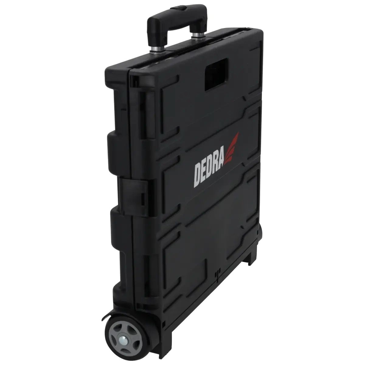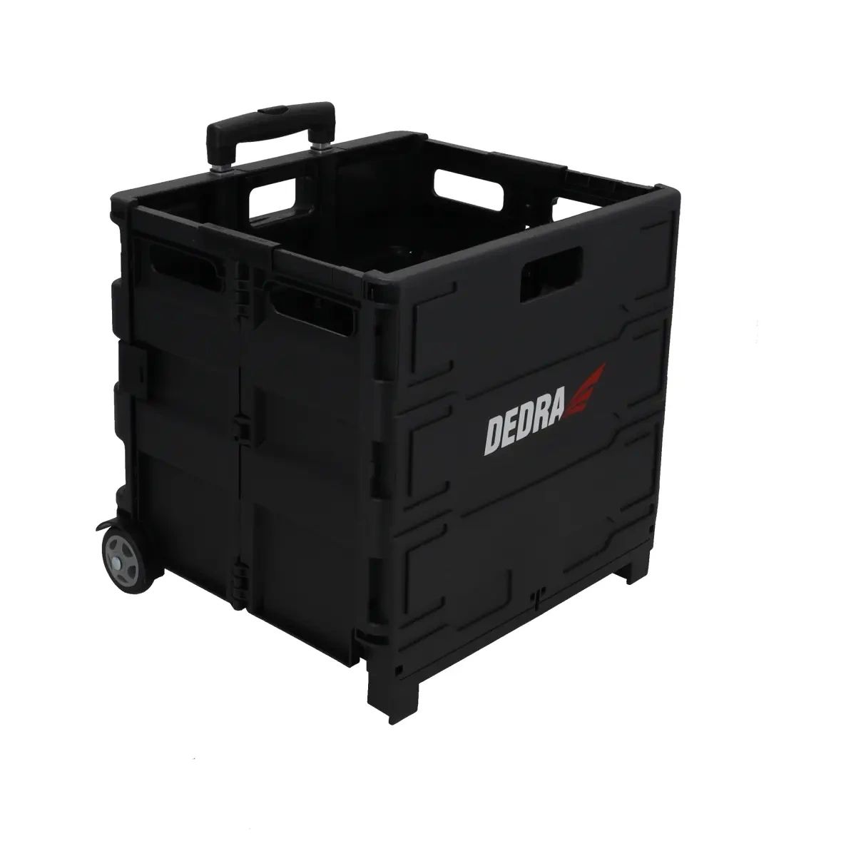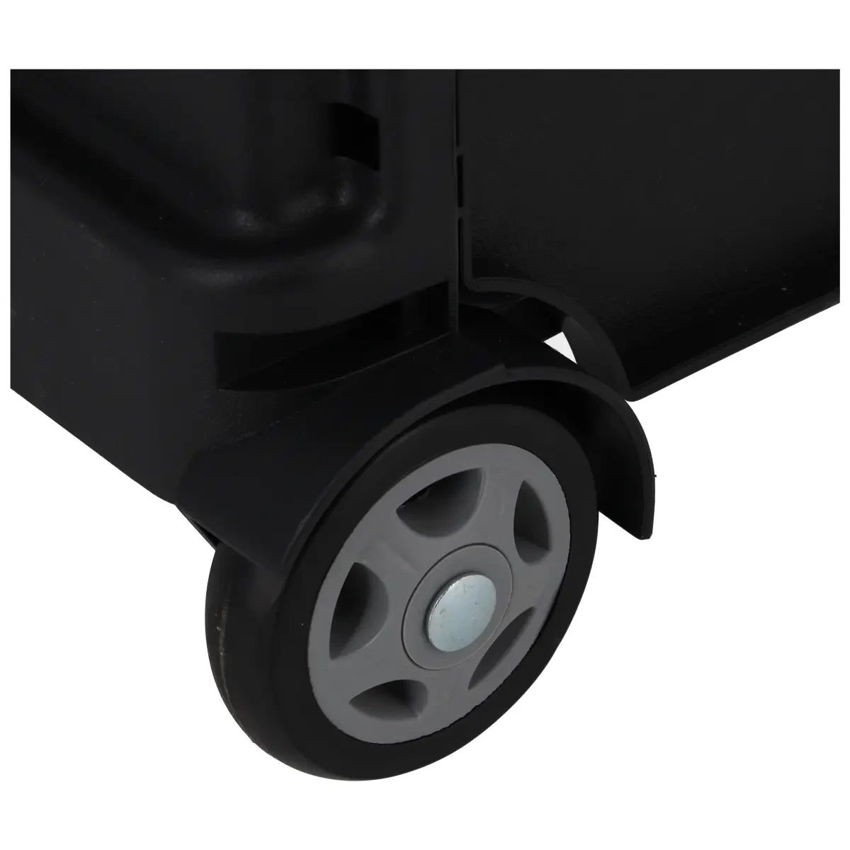 Max. nosnost 35 kg, objem 67 l, lehká konstrukce, skládací, materiál: plastový box, hliníková teleskopická rukojeť nastavitelná ve 2 výškách; 2 kolečka o průměru 7 cm.