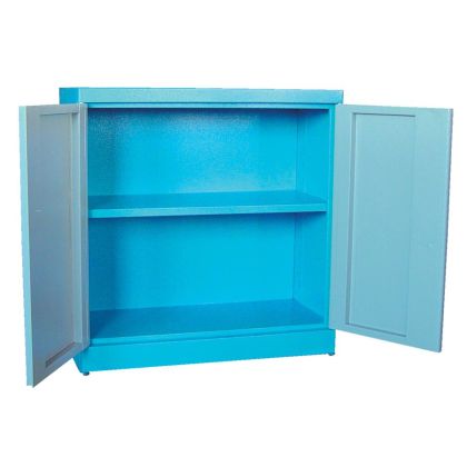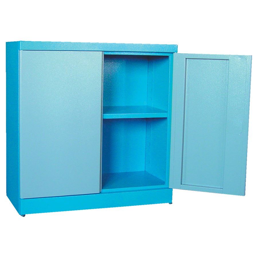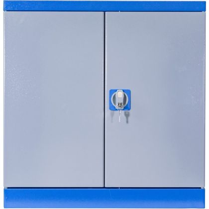 Vybavení: dvoudveřová skříňka (-> uzamykání cylindrickým/rozvorovým zámkem - dvojité uzamčení, 2 klíče), vyjímatelná polička (-> volitelné nastavení výšky).