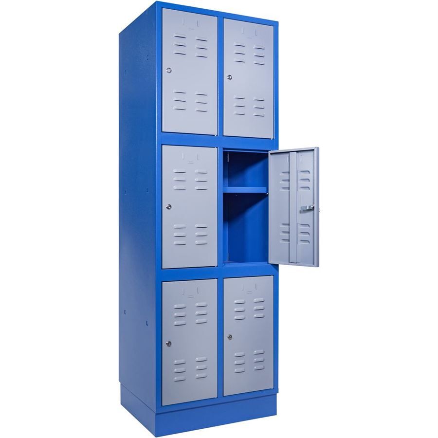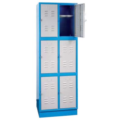 Vícekomorová skříň s univerzálním využitím ve výrobní i nevýrobní sféře (-> školní šatny, sportoviště, servisní dílny, výrobní provozy apod.).