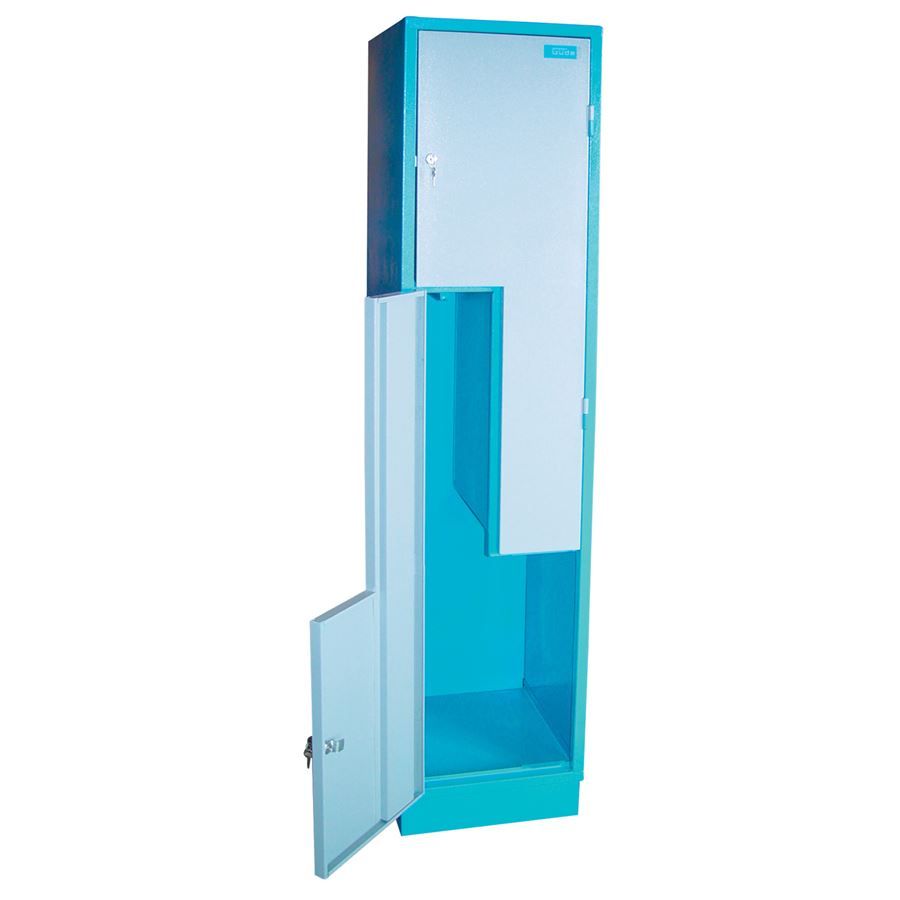 Dvoukomorová skříň s univerzálním využitím ve výrobní i nevýrobní sféře (-> školní šatny, sportovní kluby, servisní dílny, výrobní provozy apod.).