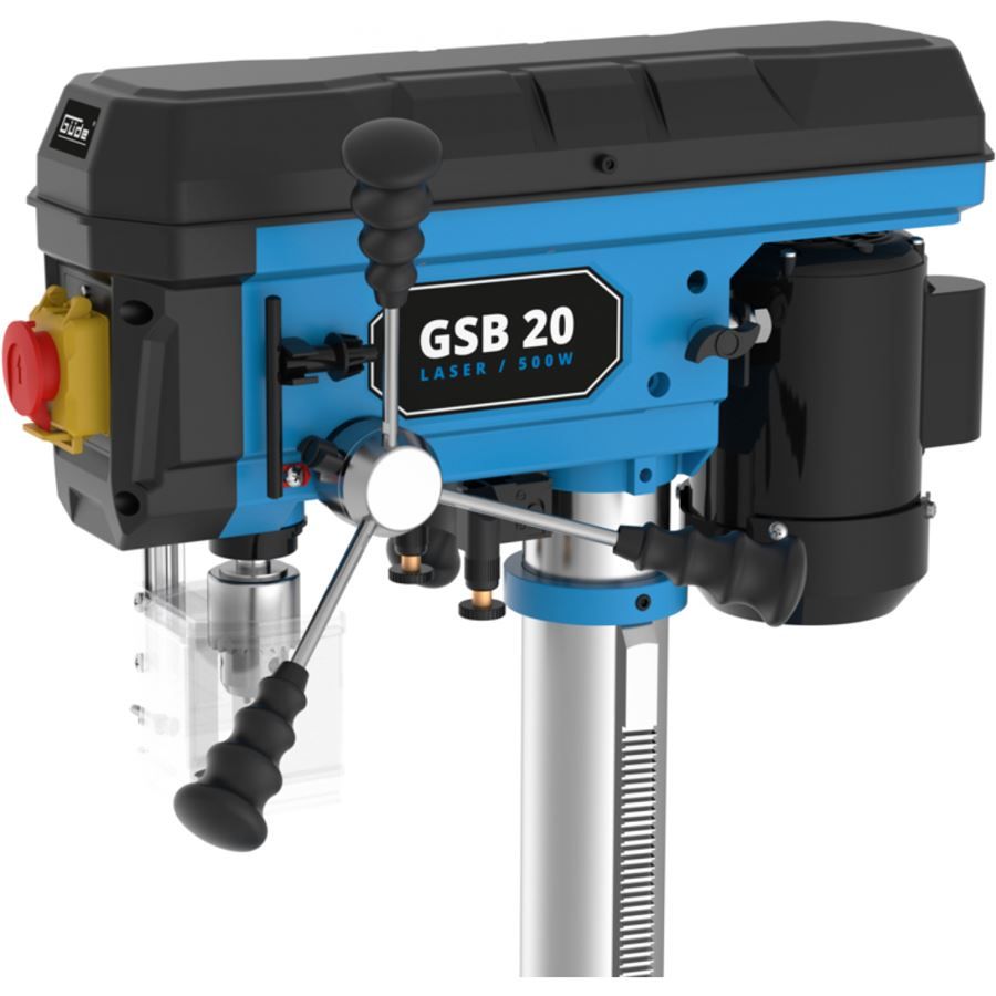 Sloupová vrtačka GÜDE řady GSB, vhodná k vrtání kovů, dřeva nebo plastů v podmínkách domácích i řemeslnických (údržbářských) dílen.
