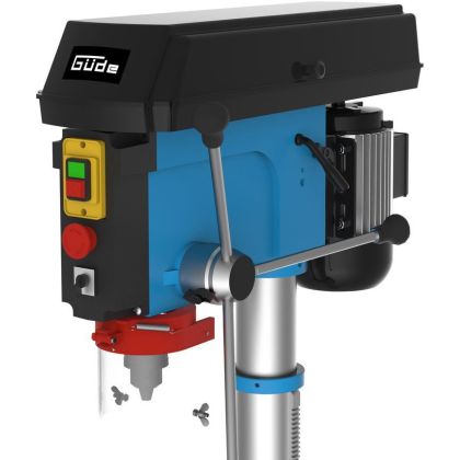 Robustní sloupová vrtačka GÜDE, určená k vrtání do kovů, dřeva, plastů v prostředí zámečnických, údržbářských (opravárenských) provozů.