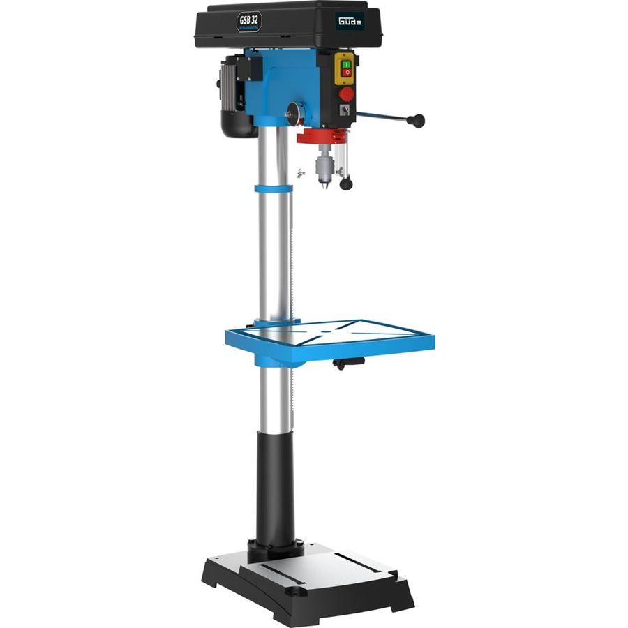 Robustní sloupová vrtačka GÜDE, určená k vrtání kovů, dřeva, plastů v prostředí zámečnických (údržbářských) a opravárenských provozů.