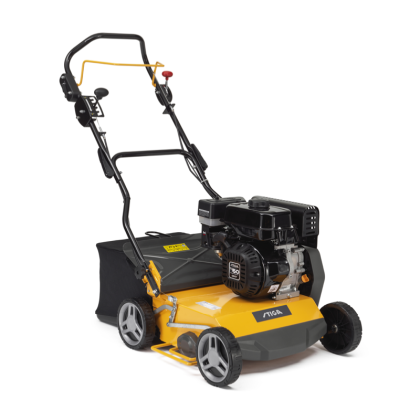 Benzinový vertikutátor pro odstranění plevele, mechu a uschlé trávy z trávníku. Systém centrálního nastavení výšky s 32 plovoucími lopatkami. Poháněn čtyřtaktním motorem o objemu 182 cm3.