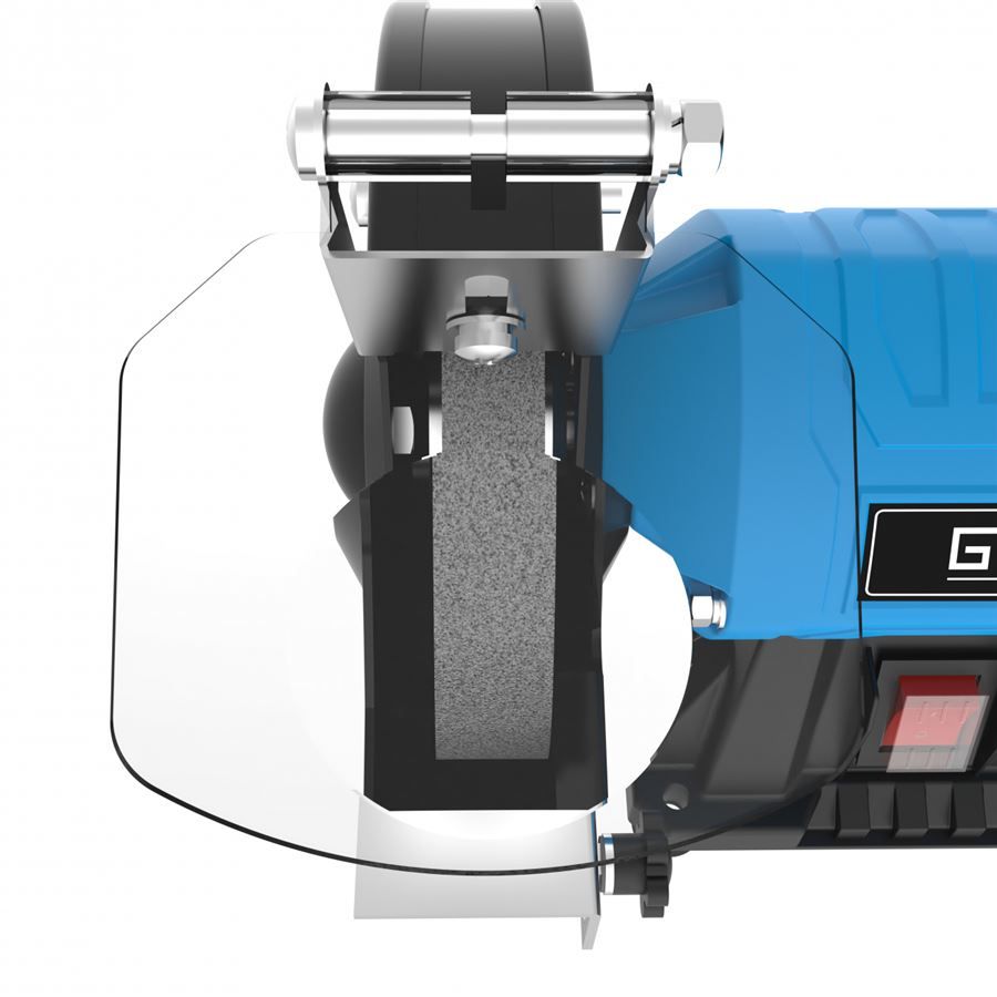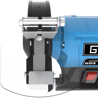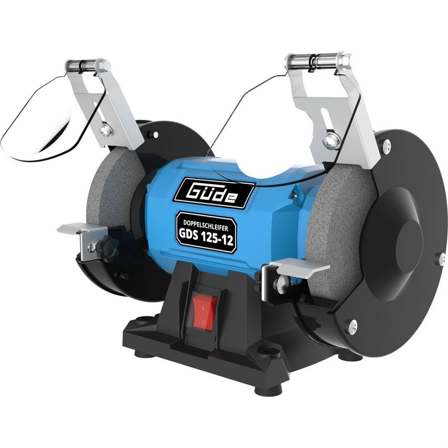 Praktická stolní bruska GÜDE, určená k ostření nástrojů nebo broušení kovových povrchů.
