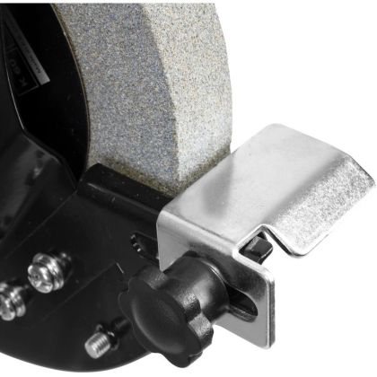 | • nastavitelné ochranné kryty proti jiskrám • pracovní LED osvětlení • zásuvka • 2 ochranné kryty (1x s lupou) • orovnávač brusných kotoučů |