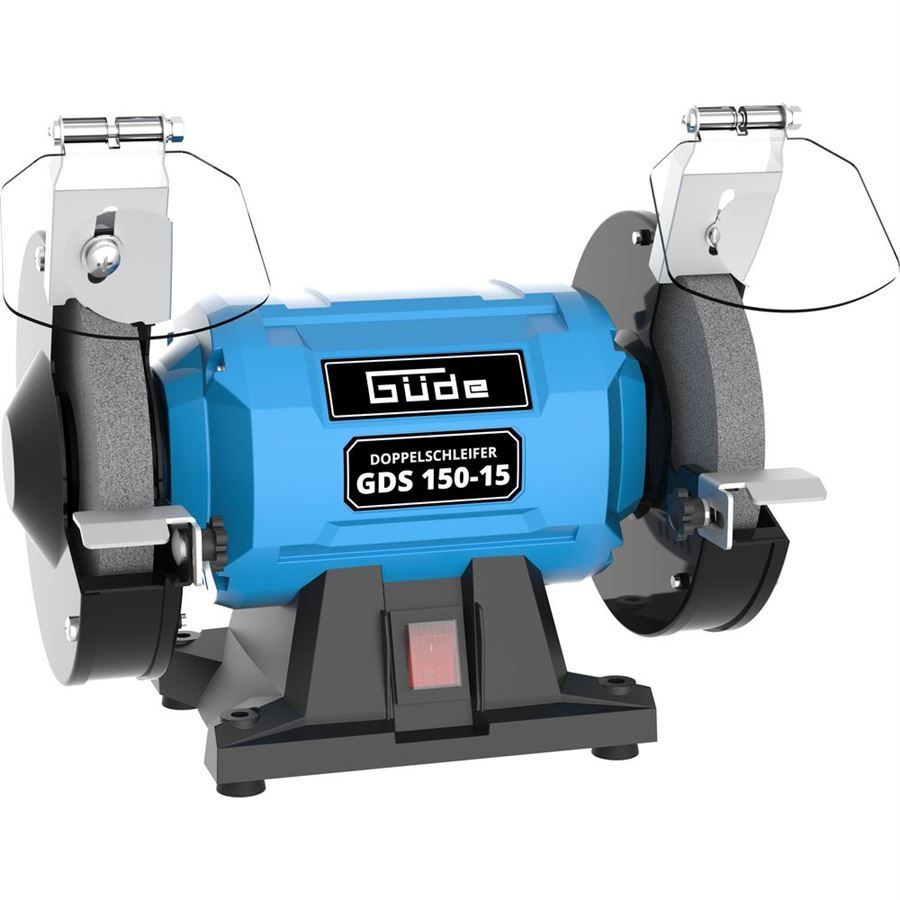 Praktická stolní bruska GÜDE, určená k ostření nástrojů nebo broušení kovových povrchů.
