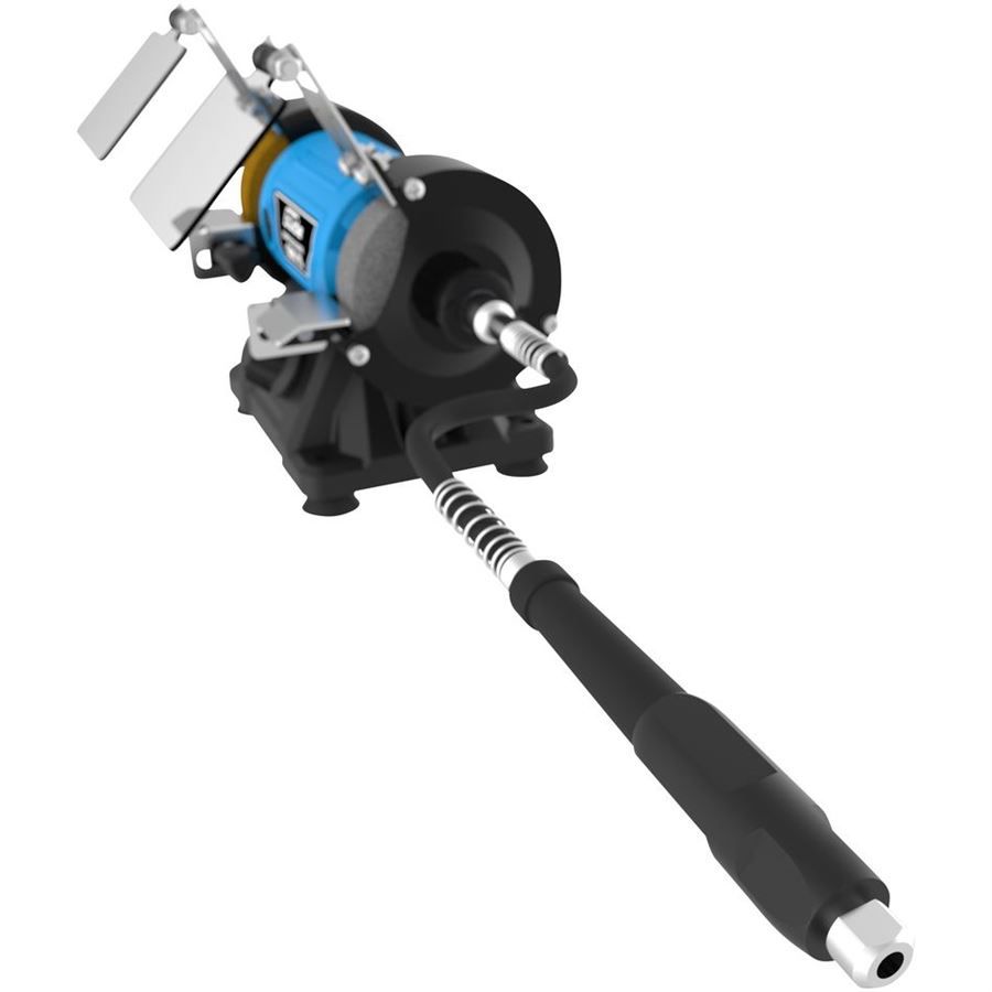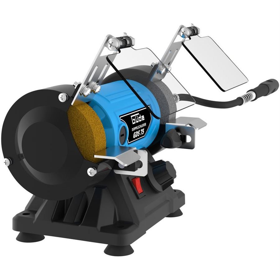 Kombinovaná stolní bruska GÜDE, vhodná k ostření drobných nástrojů nebo cizelování obrobků pomocí brusných, lešticích aj. tělísek.