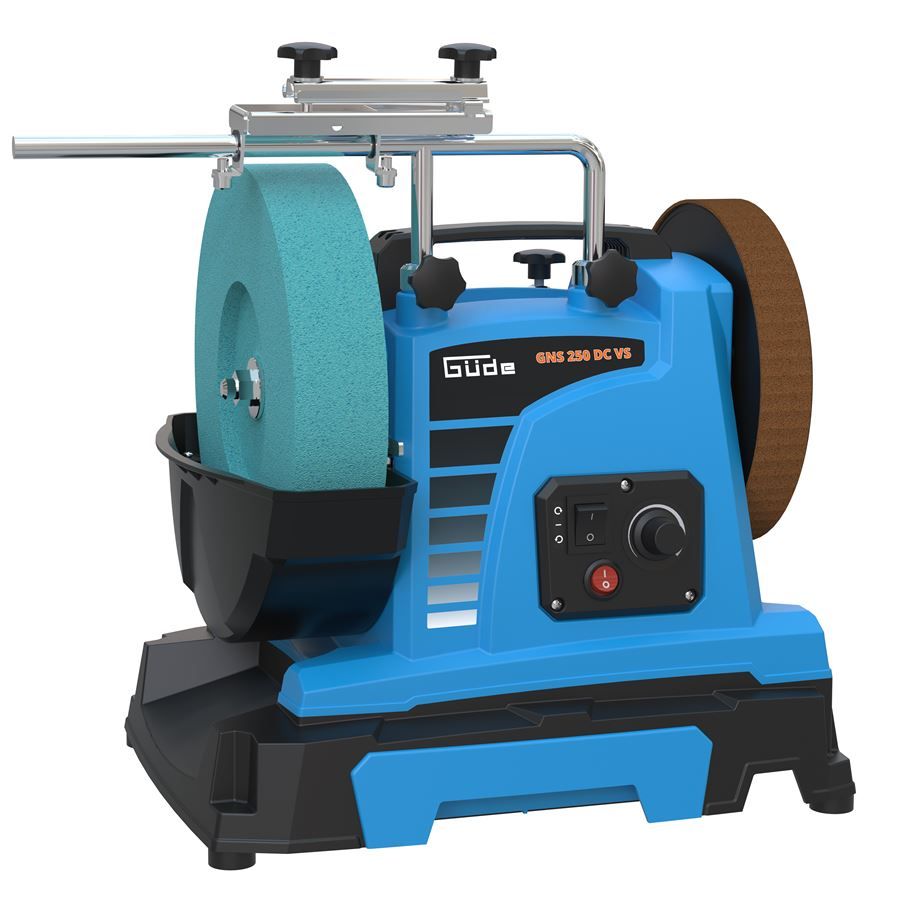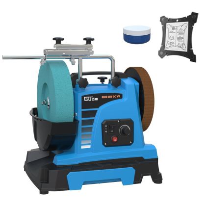 Bruska GÜDE má 150 W motor s měděným vinutím, který zaručuje mimořádně hladký chod. Díky regulaci otáček Vario-Speed a dvěma směrům chodu lze kontrolovaně a šetrně brousit jakýkoli nástroj od nožů a seker až po hoblíky. Nádržka na vodu s ochranou proti přetečení zaručuje vždy optimální chlazení.