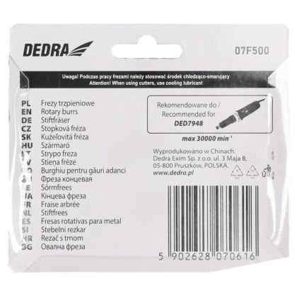 průměr stopky 6 mm, materiál: HSS, max. otáčky 30000 ot/min, pro použití s přímými bruskami při opracování měkkých kovů, hliníku atd., doporučeno pro DED7948