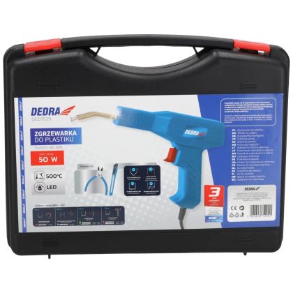 Sada, max. pracovní teplota 500 °C, napájení 230 V/50 Hz, příkon 50 W, určení: opravy a zpevňování poškozených plastů, např. nárazníků, přístrojových desek. Sada obsahuje 4 druhy svařovacích sponek po 200 kusech, kleště, řezačku.