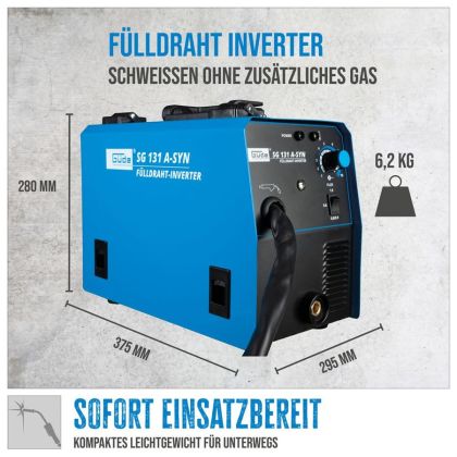 Invertorová svářečka Güde, určená pro obloukové svařování tavidlem plněnou elektrodou do max. Ø 0,9 mm (FCAW).