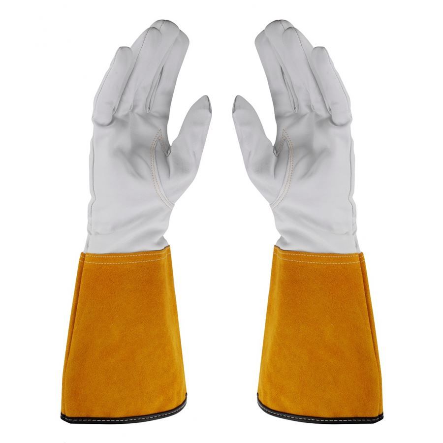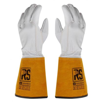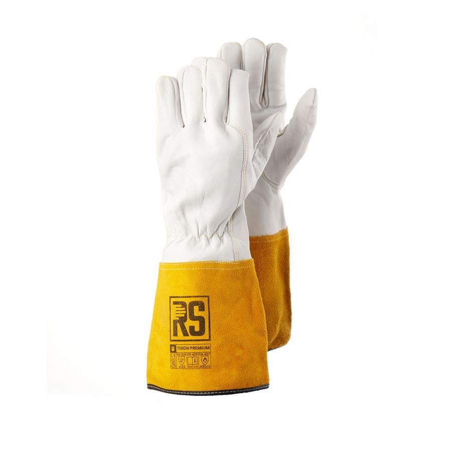 RS Tigon Premium – vysoce kvalitní svářečské rukavice vyrobené z jemné kozinky dvojitě prošívané kevlarovou nití. Manžeta ze štípané hovězí kůže s impregnací zabraňující prostupu tepla. Vhodné ke svařování metodou TIG. Vnitřní část rukavic je bez podšívky pro ještě lepší úchopové vlastnosti, vhodné pro jemnou práci. Přírodní barvení. Prodloužená manžeta chránící předloktí. Kategorie II EN 420 EN 388 4142 EN 407 422X4X