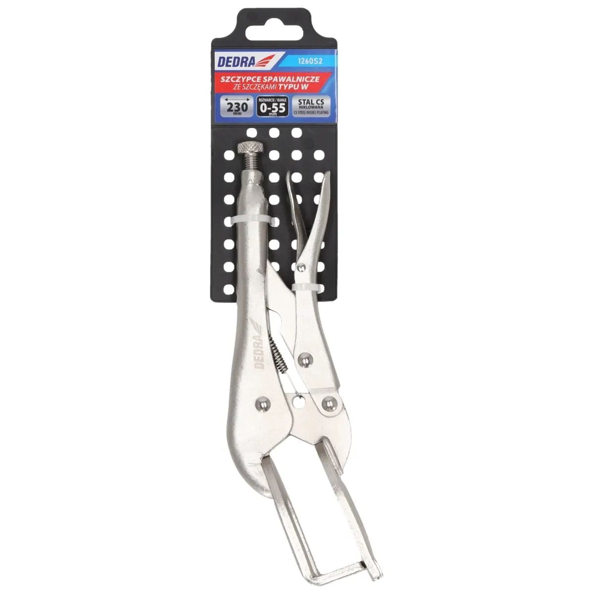 Typ čelistí: W; délka: 230 mm; šířka čelistí: 0-55 mm; materiál: uhlíková ocel, poniklovaná.