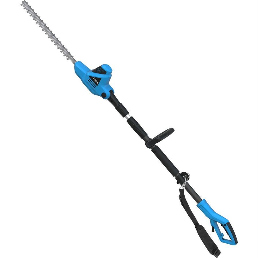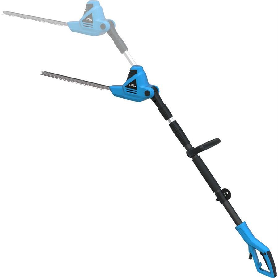 Elektrické nůžky Güde, určené ke stříhání vysokých živých plotů (keřů) ze země.