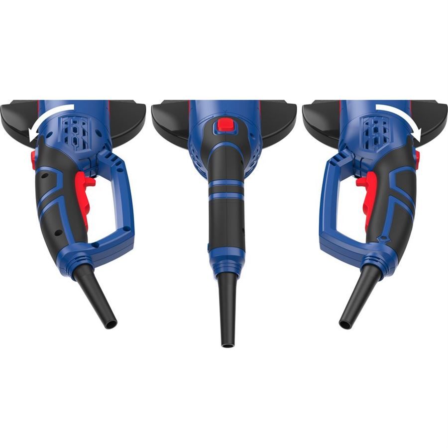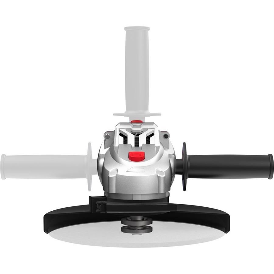 Konstrukce: převodová skříň z hliníkové slitiny, ergonomicky tvarovaná rukojeť s protiskluzovými vložkami a indikátorem napětí (-> LED dioda), polohovatelná přídavná rukojeť (-> 3 x 90°), rychloupínací ochranný kryt.