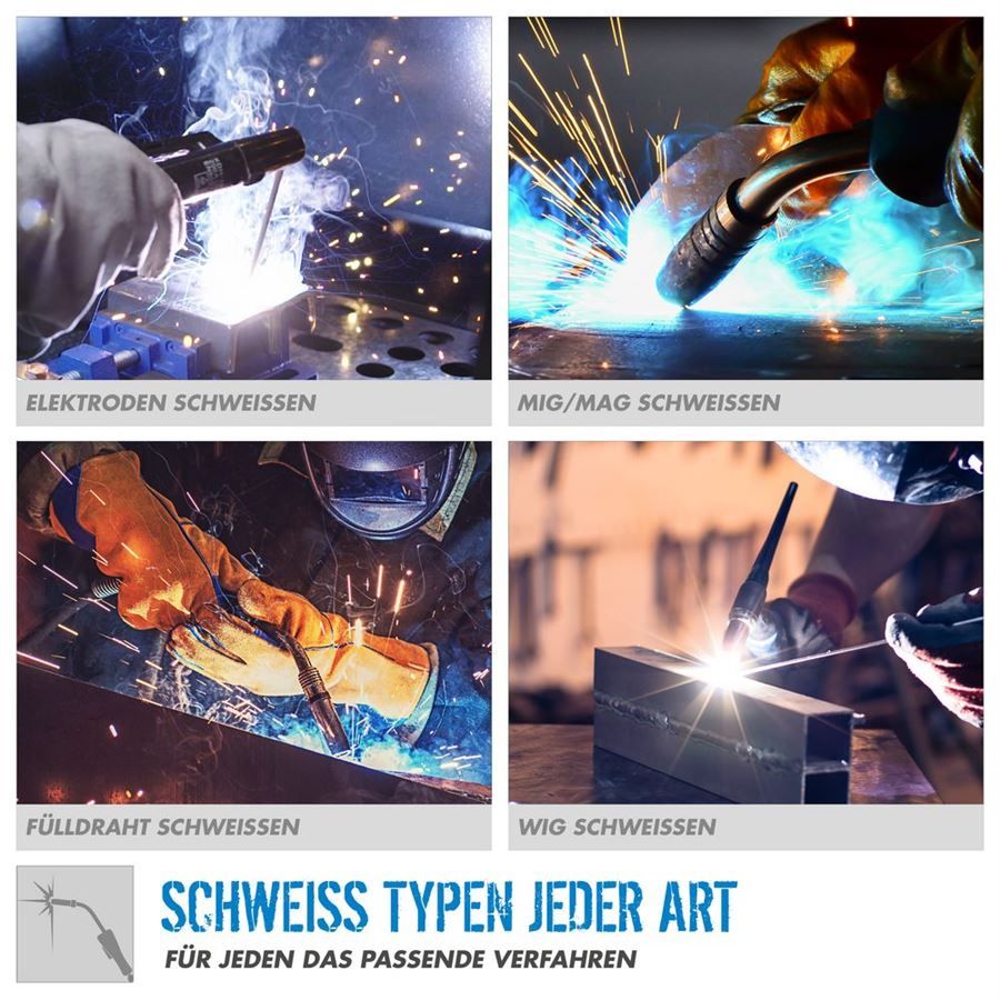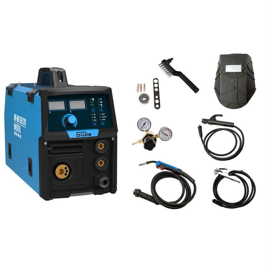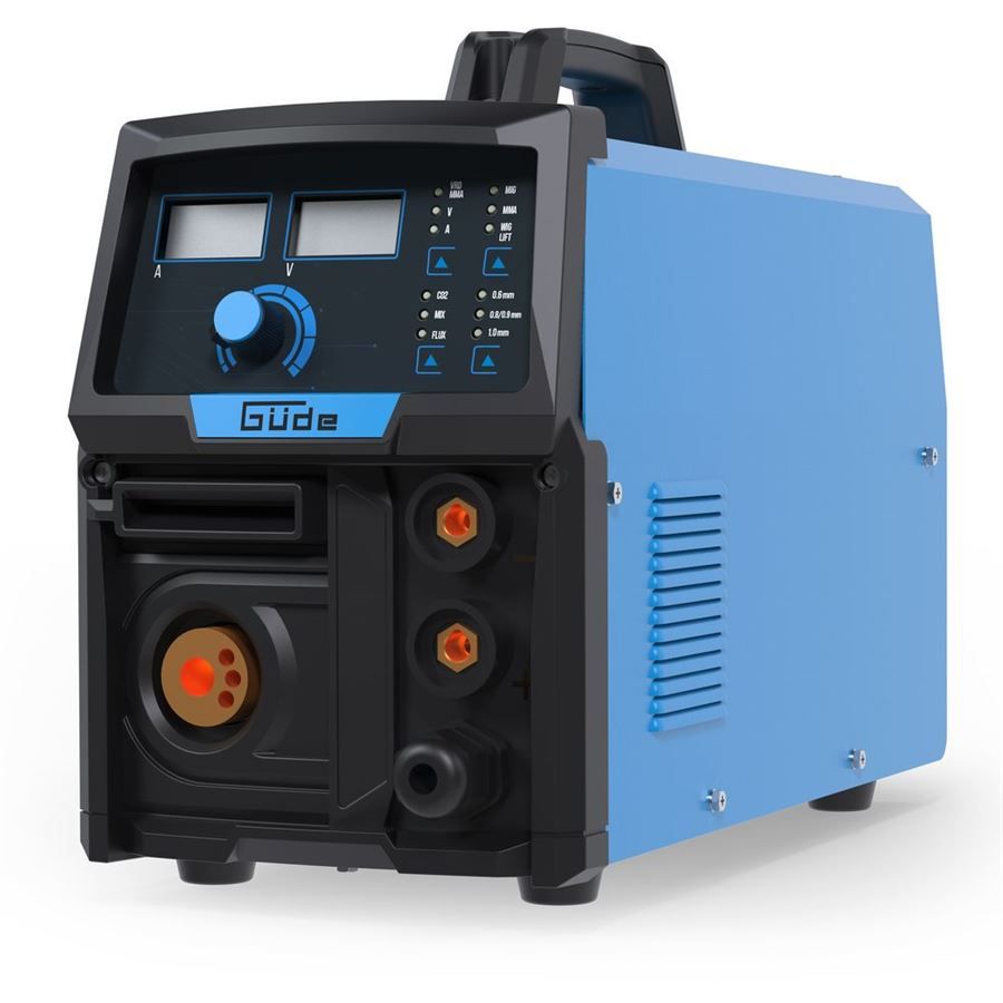 Multifunkční invertorová svářečka Güde, určená pro obloukové svařování metodami MMA, FCAW, MIG/MAG a WIG. Technologie invertoru s podporou IGBT pro extrémně rychlé spínací procesy a přesnou regulaci svařovacího proudu, která zjednodušuje svařování tenčích plechů a výrazně omezuje tvorbu svarových kuliček. Osvědčené přídavné funkce, jako jsou Anti-Stick, Hot Start a Arc Force, zajišťují maximální komfort svařování i za ztížených podmínek. Nový, inovativní a synergicky řízený posuv drátu se automaticky nastaví na vhodnou rychlost po zvolení svařovacího procesu, tloušťky drátu a tloušťky svaru. Tyto doplňkové funkce umožňují zejména začínajícím a nezkušeným svářečům okamžitě dosáhnout dobrých výsledků svařování.