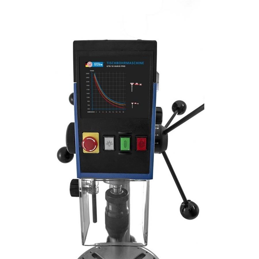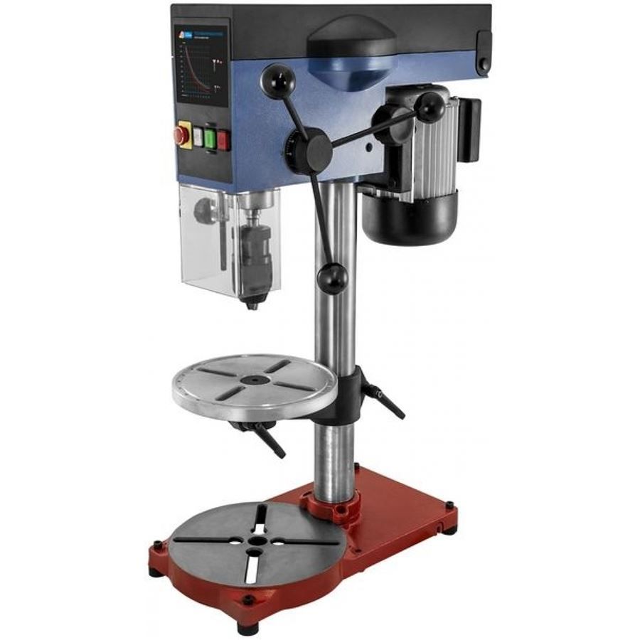 Rychloupínací sklíčidlo pro nástroje a vrtáky pr. 1 - 16 mm (-> házivost: < 0,02 mm); doraz vrtací hloubky (-> nastavení jednotné hloubky vrtání, např. pro opakované série obrobků; rozsah: 1 - 50 mm); LED osvětlení vrtacího stolu.