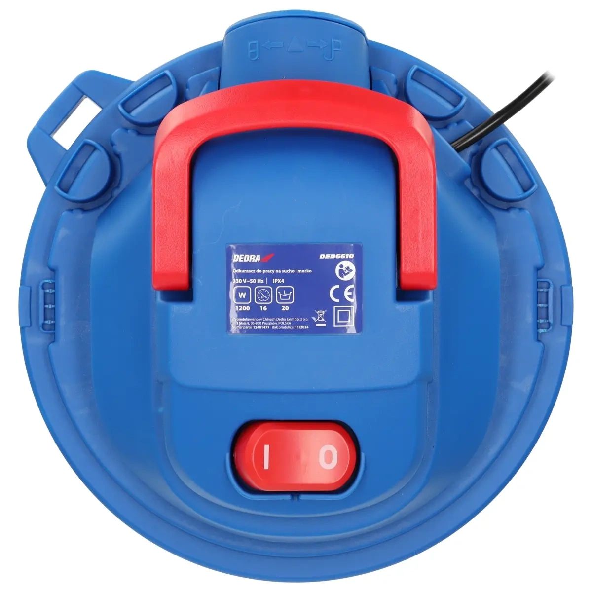 Příkon: 1200 W, funkce suché/mokré vysávání, funkce foukání, robustní kovové svorky, 20l nádrž z nerezové oceli, sací výkon: 16 kPa