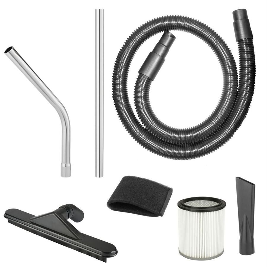 Vysavač na mokré/suché vysávání, 1,5 m sací hadice, 2dílná kovová sací trubka, 1 podlahová hubice, 1 štěrbinová hubice, 1 pěnový filtr, 1 HEPA filtr