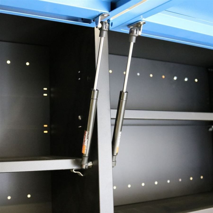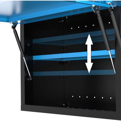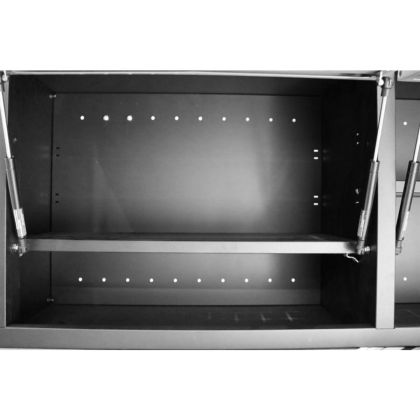 Vybavení: 2 ukládací police (-> max. nosnost: 15 kg; s 3 - polohovým nastavením výšky), výklopná dvířka s teleskopickými vzpěrami (4).