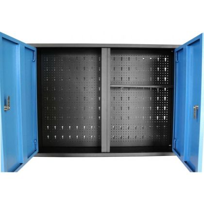 Nástěnná skříňka na nářadí, určená k využití v domácích nebo údržbářských dílnách, montážních provozech apod.