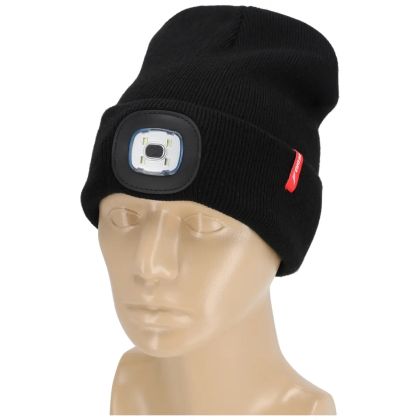 Zimní čepice se svítilnou, černá barva, univerzální velikost